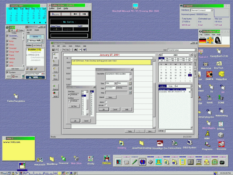 MS Windows version of the Palm Desktop application under OS/2 using ODIN. "ODIN