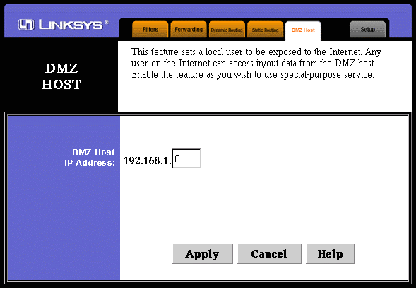 and Setup of the Linksys. But it's closed to the outside, so Remote Configuration