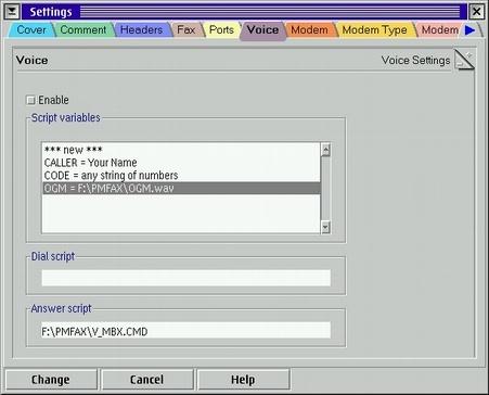 In the PMFax properties is a Voice tab. This is where you set up your Voice stuff.