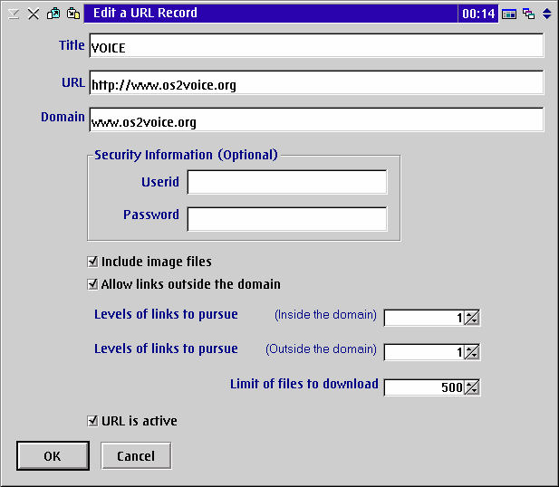 function off of the Web Willy pop up menu (icon 1). You enter the main URL to start