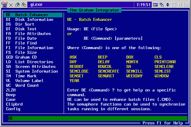 Dodel ©February 2001 Referenced web sites: The Graham Utilities for OS/2 Version 2.1: http://www.warpspeed.com.au/ |