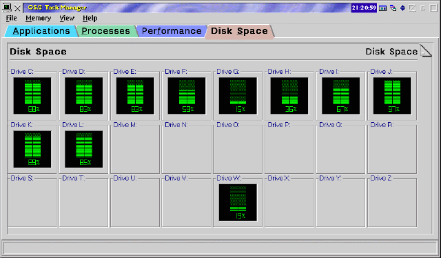 The last tab in the Task Manager is for drives. This page shows a bar graph for