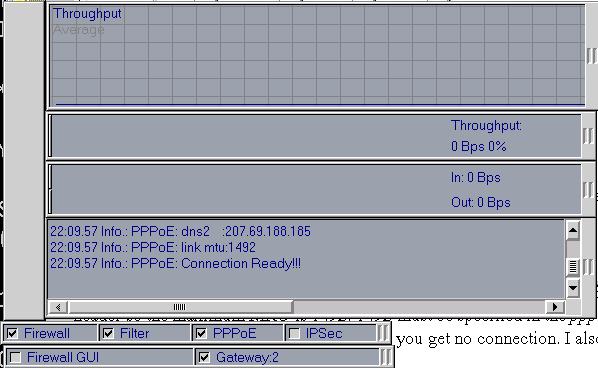 Das PM-Interface ist vollkommen modular. Ein Klick mit Mausknopf 2 in irgendein Fenster ruft ein Menü auf, in dem Sie diverse Einstellungsoptionen finden. Wählen Sie PPPoE, um Login und Passwort einzurichten, wählen Sie TCP, um die wichtigsten Server einzutragen. Da alles dynamisch ist, tragen Sie einfach 0.0.0.0 ein. Das Einzige, was Sie im PM-Interface nicht sehen können, ist die MTU (message transmission unit).