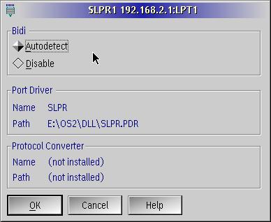 Streaming Line PRinter (SLPR.PDR) is a streaming port driver used to connect your computer to a printer or print server via a TCP/IP connection. The driver uses Line Printer Daemon (LPD) Protocol as specified in RFC 1179. This protocol is an almost universal way to send print data to printers and servers. It is meant to be used as a alternative to the \PIPE\LPD0 (henceforth LPD0) port driver which is shipped with OS/2. (From the readme file accompanying the SLPR driver. For the complete file, click here.)