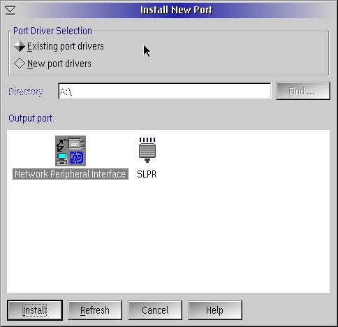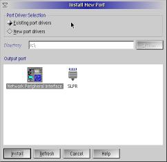 If you copied the SLPR files into a directory other than x:\OS2\DLL, then you should temporarily ignore the Output Port window. To access the SLPR files, you need to select the New port drivers radio button at the topic of the window, and enter the directory into which you copied the files. Now the icon should appear in the Output Port window. If it does not, check the directory you typed in.
