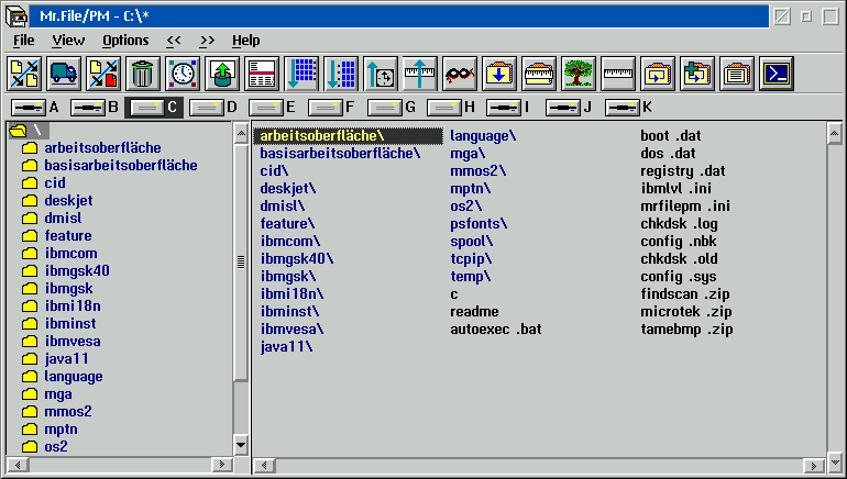 Genaugenommen kapiere ich bis heute noch nicht, warum kein mir bekanntes Betriebssystem (damit meine ich neben OS/2: MacOS, Windows alle Varianten, DOS, Unix, Linux) mit einer anständigen Dateiverwaltung daherkommt. Sicher man kann mit all den Eroberern, Erforschern, Findern und Arbeitsplatzschalen die notwendigen Operationen durchführen, besser gehts jedoch mit einem extra zu installierenden Steuermann oder Lenker.