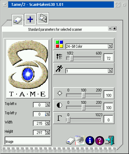 Das in 'The Free Files Vol.3' angekündigte TAME/2 0.9.0 ist nun verfügbar. Da ich selbst mitverantwortlich dafür zeichne, überlasse ich die Bewertung lieber anderen. Deshalb einzig ein aktualisierter Screenshot und die Bitte an alle Besitzer eines unter SANE betriebenen Scanners: Sollte ihr Scanner nicht in der Datenbank von TAME/2 sein, senden Sie uns doch die notwendigen Daten. Andere Benutzer werden es Ihnen danken. Ach ja, an Version 0.9.2 wird bereits gearbeitet, dann sollten auch Scanner, die das microtek2-Backend verlangen, mit TAME/2 benutzbar sein.